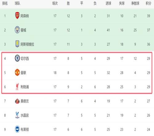 此役拿到3分之后,曼联排名已经升到第五,他们的积分已经追平第四的切尔西,仅仅因为净胜球少而位居对手之后。对于曼联来讲,如今欧冠席位已经近在咫尺,他们接下来只要继续努力,随时有机会进入前四。