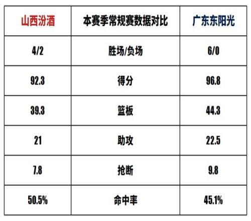 赛事前瞻常规赛第7轮山西汾酒vs广东东阳光