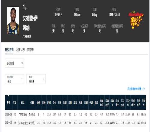 广东男篮是CBA联盟为数不多的以本土后场组合为首发的球队。杜锋本赛季的常规安排就是徐杰、胡明轩首发,小外萨姆纳第六人。本赛季6场过后,萨姆纳仅1场获得首发机会。