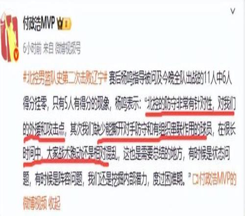 辽宁为何打残阵北控6人得0分太丢人了,赛后杨鸣道出两个原因