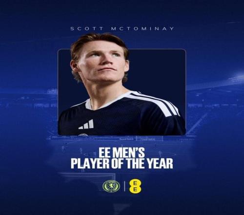 苏格兰足总官方写道:斯科特-麦克托米奈被评为2025年度苏格兰男子最佳球员。期待2026年他能继续保持这样的表现,加油,斯科特!