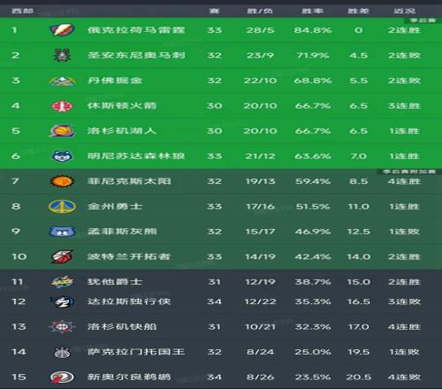 NBA西部最新积分榜:雷霆28胜领跑,刺掘连败,火箭第4,勇士第8