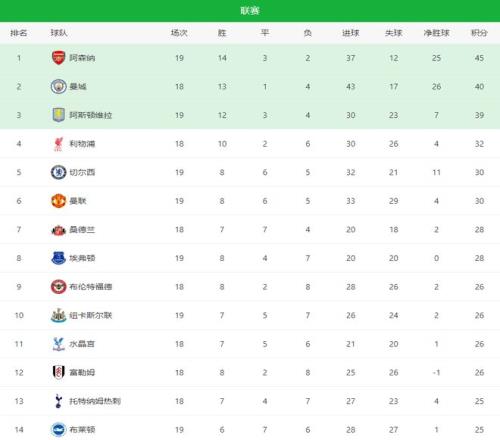 随着阿森纳41维拉+曼联11爆冷!英超最新积分榜:切尔西掉队