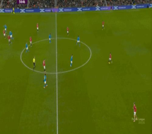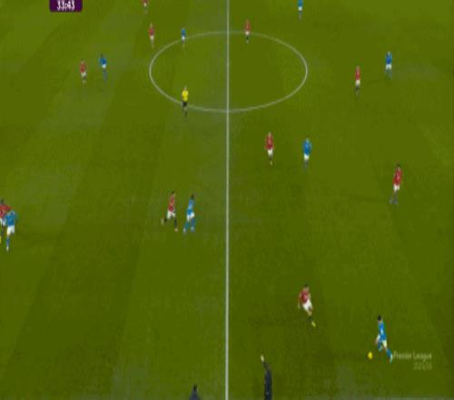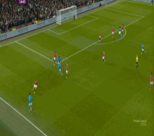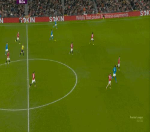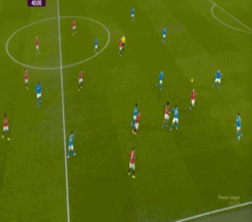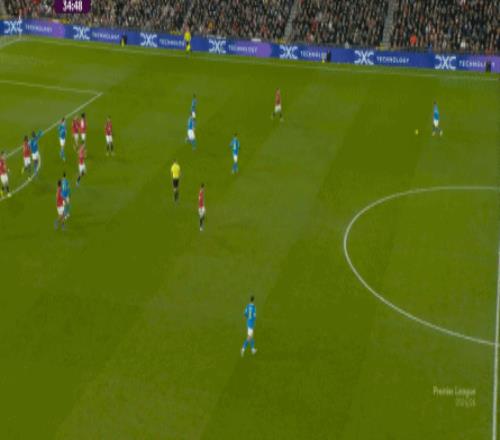 也能通过捕捉曼联的失误,吃掉库尼亚之后,从右路继续送出传中:
