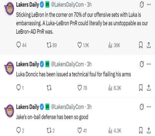 值得一提的是,在比赛期间Lakers Daily就曾不满詹姆斯在东契奇身旁打无球:“詹东同时在场时,詹姆斯70%的时间在蹲底角,这对他简直就是羞辱,詹东的挡拆配合本可以像詹眉挡拆一样势不可挡。”