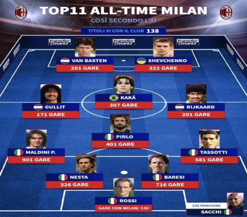 AC米兰历史最佳阵容发布!加图索落选卡卡领衔!这阵容合理吗
