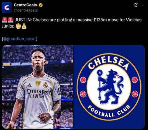 重磅!曝切尔西斥资1.35亿镑求购维尼修斯皇马考虑放人